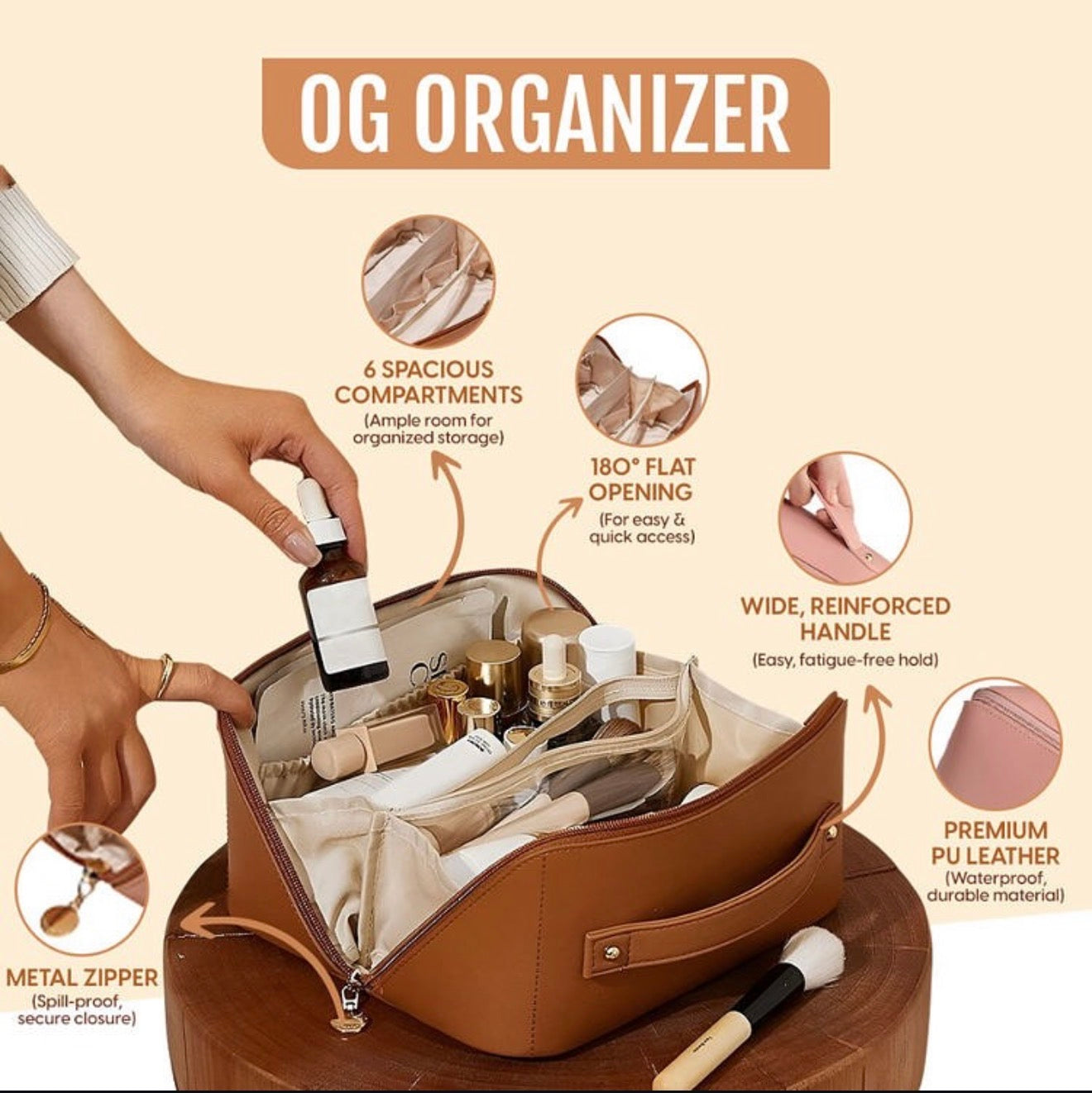 - Pametan kapacitet: Dovoljno prostrana za šminku, skincare i četkice — a dovoljno kompaktna da stane u ručni prtljag ili torbu.